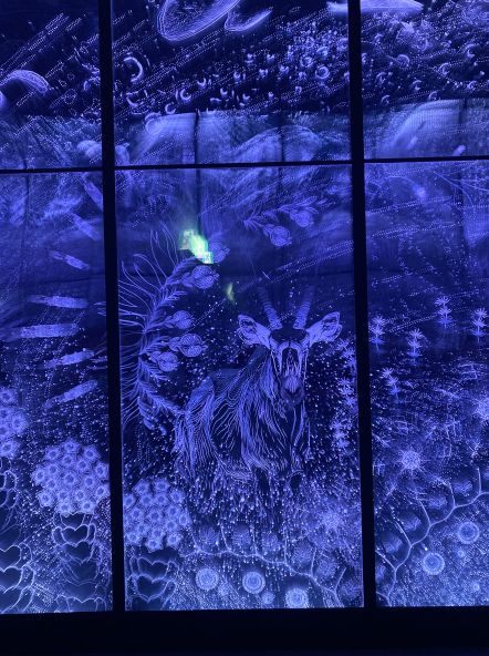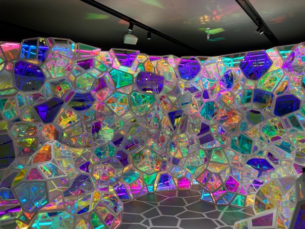 これは角度で色が変わるガラスの展示