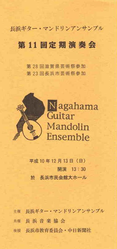 | 第11回定期演奏会 期日:平成10年12月13日(日) 開演:午後1:30 場所:長浜市民会館大ホール | |