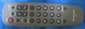 使用したパナソニックの古いリモコンです。このリモコンのチャンネルアップキー(>)、チャンネルダウンキー(<)を使用します。