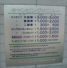 キャンプ600円/オートキャンプの場合 区画料1500円or3000円 テニスコート有 |