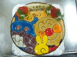 | 小さいサイズのデコでは描きにくいイラストの時は 大きいサイズのデコでスポンジを3枚から2枚に減らして 価格を抑えたイラストデコも作成します。(厚みが薄いので、食べられる人数は少なくなるかも知れません) |