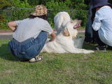 | 5月26日はライトハウスのボランティアデーです。訓練中の純に久しぶりに会いました。やっぱり大喜びはしませんね。皆と遊ぶ方が大事です。 |
