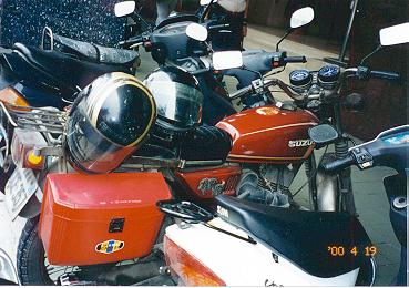 さて、真ん中に写ってるのは、SUZUKI製ですね。「雄獅125SD」と書いてます。車名でしょうか。こういう小排気量車が幅を利かせてるあたり、南国的です。 それから、両脇にスクーター。スクーターも、やけに多かったとか。