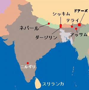 | 代表的な紅茶の銘柄を、産地別に地図に示してみました。 「この紅茶はどこで生産されているの?」とお思いになったことはございませんか? 生産地の位置関係なども交えて各紅茶の説明をご覧になれば、きっと今まで以上に紅茶に対しての知識が深まる事と思います。  のついている銘柄は ミルクティー向きです | |