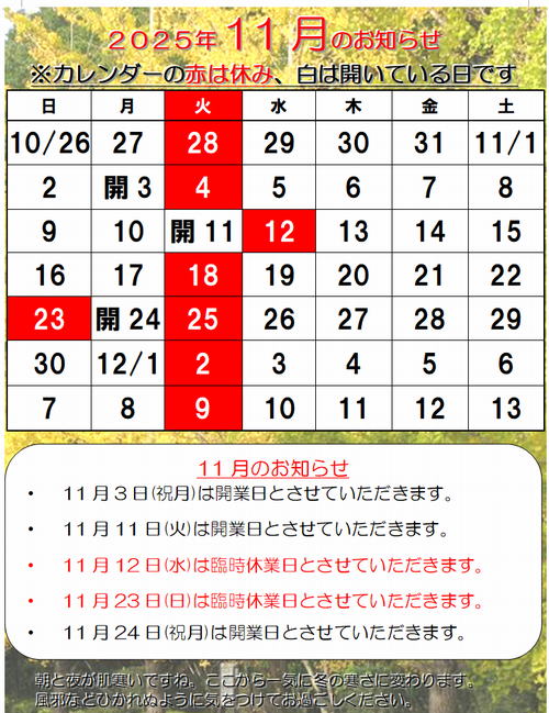 2011年 7月月21日 院内誌のNo.EX1「治療院て何するところ?」をUPしました。 2010年 12月15日 院内誌のNo.4「腰痛もいろいろ膝痛もいろいろ」をUPしました。 2010年 11月20日 ホームページをリニューアルしました。