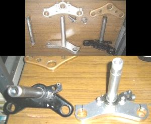 猿用のトップブリッジはそのまま着かないので、シャフトをプレスで抜いて、ポッケのオリジナルの寸法で作成したシャフトに打ち替えしました。そんでもってノーマルのハンドルロックとストッパーを使えるようにするために、3mmのステンプレートを切り抜いてキャップボルト2箇所留め(ノーマルのストッパー位置でとまるあたり)しました。 何となくでけてきた♪
