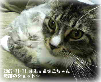 | ピュリナワンのドライフード入れが当たったニャ〜 シナモンちゃんとレオ君ですv 避妊したシナモンちゃんオデブには気をつけてね! on mouse |