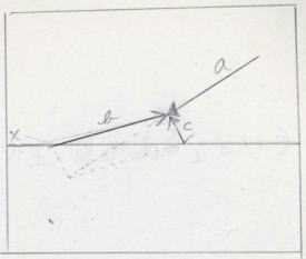 aの力と、bとcの合力がつりあっている場合、そこにxを底辺にした三角形が出来る。