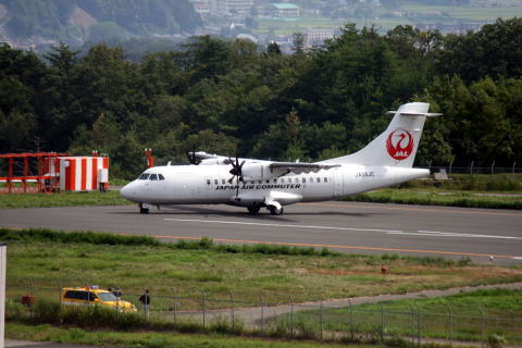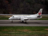 | コウノトリ但馬空港は兵庫県豊岡市内の山を切り開いて作られた空港で、季節によって霧が発生し離着陸が困難になることがある空港です。1日朝と夕方に1往復ずつ日本航空グループの日本エアコミューターが運航しています。機材はサーブ340Bというスウェーデンのサーブ社が製造する双発プロペラ機です。水平尾翼の跳ね上がった形が特徴です。(2018年5月から機材がサーブ340BからATR42-600に代わりました) | |||||