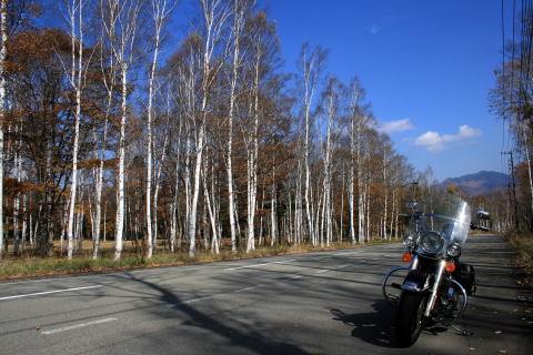 白樺林の中の道は両サイドに落ち葉が10cmほど積もっていて「これは無理!」