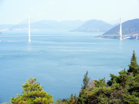 開山の展望台からは多々羅大橋を真横から見ることができます。少し霞んで見えるのが残念です。それにしてもここの展望台は人がいません!私がいる間も誰とも会いませんでした。 |