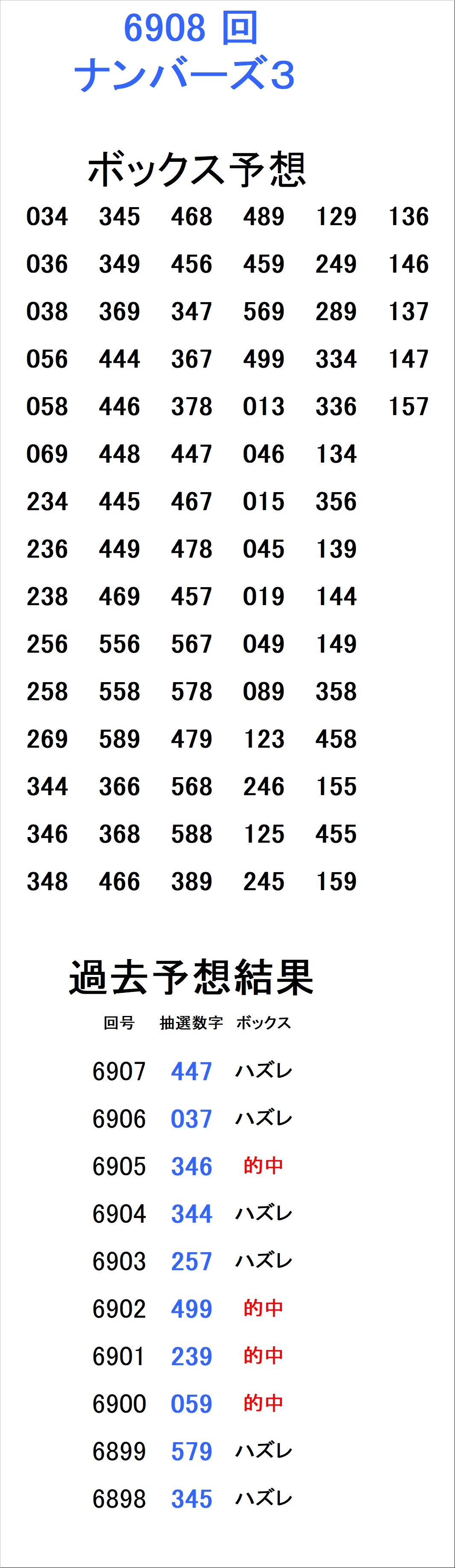 ナンバーズ3ボックス予想 通常そっくり数字予想 |