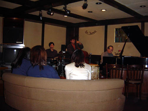 美女三名はこのジャズ演奏に酔いしれ、ワイヤワイヤの喝采。
