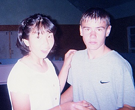 | 最後の日 8月22日の朝起きてすぐに、日本の家族へのおみやげを渡してくれた。でも、そのときすでに荷物を詰めていたので、一生懸命詰めなおしていたら、Momにどこかに出かけて行ってまたすぐ帰ってくるような感じで「もう、行くわよ」と言われた。私は、本当に帰ることが信じられなかった。このまま、Kimの家にいても違和感はなさそうだ。とにかく、集合場所のVermilionに行った。そこにはすでに啓太が来ていたが、少しさびしそうだった。その内に、みんな集まってきてみんなで喋り始めた。1時間くらい経ってバスが来た。私たちは、そのバスに乗らなければいけない。Dadが「Aoiは、私の子どもだよ」みたいなことを言ってHugしてくれた。それからMomも「また絶対わたし達の家においで」みたいなことを言ってくれてHugをした。Kimにも「絶対にまたカナダに来てね」といわれて、Hugをした。Kimはけっこう元気そうだったが、Momは少し泣いていた。私も、少しウルウルしていた。。私達は、カルガリーに向かうバスの中で、ずっとそれぞれの家での話をしていた。きっとこの1ヶ月の思い出は一生忘れないだろう。 |