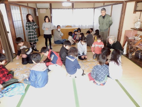次は3チームに分かれてカルタ取りです。保護者も別にカルタ取りをしました。