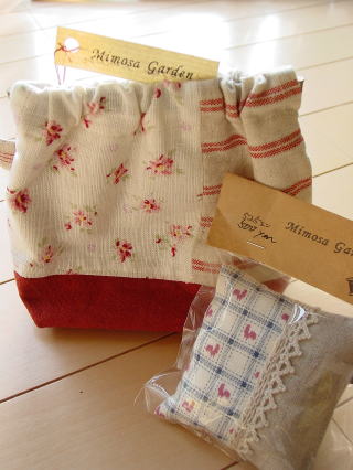写真左は、mimosagarden さん作のばねポーチと針山とっても使いやすくてかわいいです。