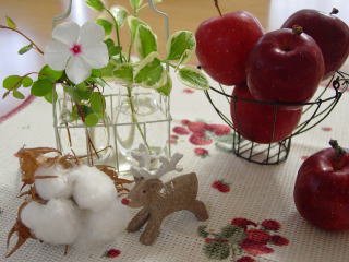 ティッシュケースや花瓶、トナカイさんの置物、ハートのレシピスタンド、ランチョンマットなど、かわいいもの