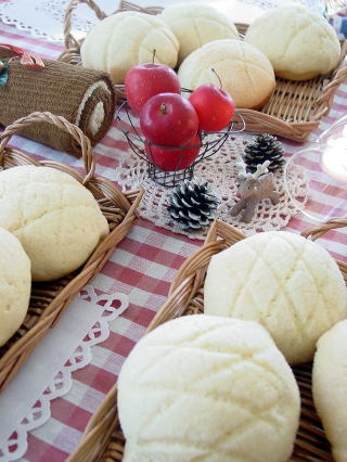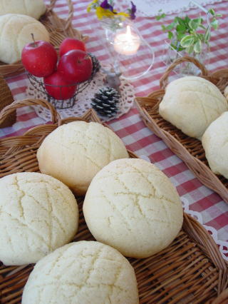 ひとり4個で、20個のメロンパンが並ぶととてもかわいくって・・