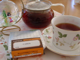ルピシアのCAROLというブレンドティー、クリスマス向けだそうで、さっそく、お菓子と