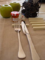 写真下左、冬休みにフォークレストを作りました。木を8cmに主人にきってもらい、