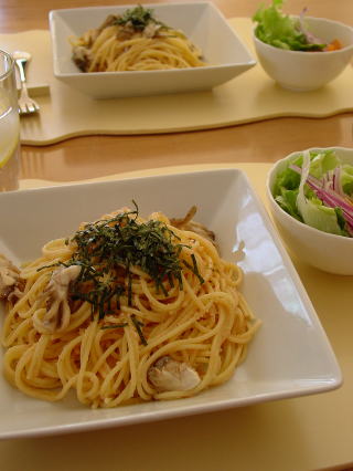 発酵中のお昼ご飯・・・明太子スパゲッティーとサラダ