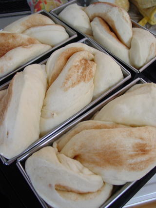 シナモンプレッド、焼成前(真中)、焼成後(写真右)こちらは、お持ち帰りいただきました。
