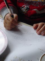 でも 食べ終わると 子供には退屈らしく、紙のランチョンマットにクイズや迷路を書いて