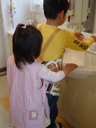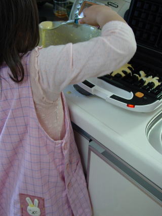 ↑女の子は、いいですね、色々と手伝ってくれました。ワッフルメーカーに生地を