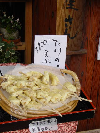 たけのこの天麩羅や吉野名産のあまごや くず が売られていて、なんとも