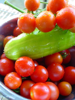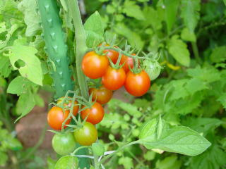 トマトもいっぱいなっています。食べきれないくらいですぅ。