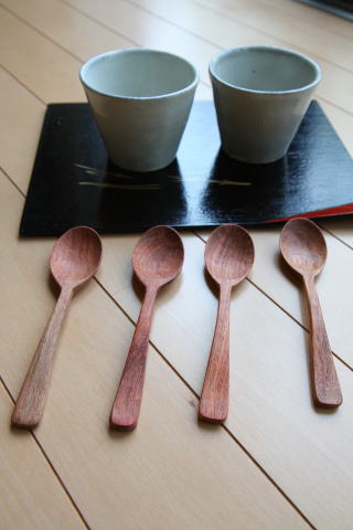 自宅近所の陶屋 なづな さんで、木製のスプーンとそばつゆいれ? 2個を購入!