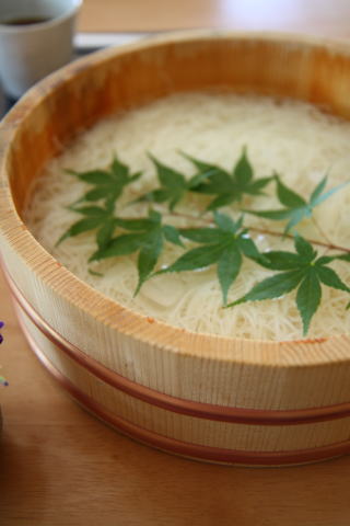 (撮影の為にそうめんをきれいにセッティングしていますが、いつもこんな風に食べてないですよ!)
