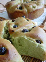 早起きしたので、抹茶クーヘンを焼きました。生地に抹茶がはいり、甘納豆をいれます。
