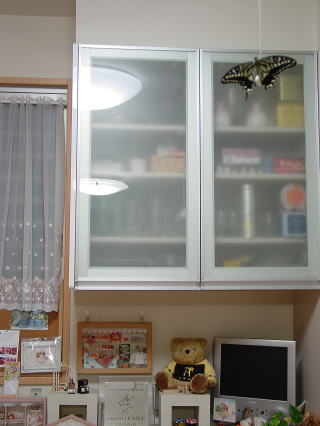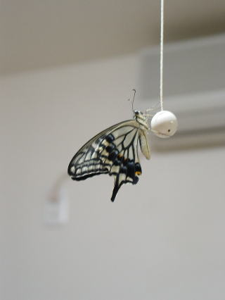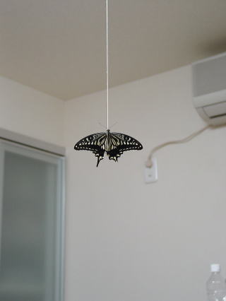 8/20の日記の 「さなぎ」が、「蝶に」なりました。リビング、キッチンをひらひらしています。