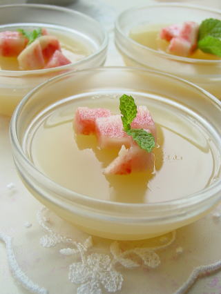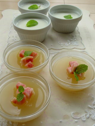 次男用にピーチジュースで、ゼリーを!! 長男のために、ブランマンジェを !!