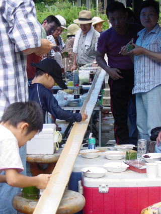流し素麺、なんと、お隣のグループがされていたのですが、「食べにおいで〜」と言ってくださり