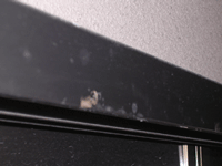 | 現在、窓枠のサッシ上部に簾専用ステーを取り付けています。ねじ部分の錆びが気になって取り外して見るとサッシ枠が重さで変形し、ねじの締め付け部分が腐食していました。また、窓との隙間がなく圧迫感や風にあおられ窓をたたく音が気になるため、軒先に掛けることにしました。 モルタル壁に穴を開けるのは不本意ですが軒先の内側に見栄えの良いステンレス製のステーを取り付けて掛けることにします。 |