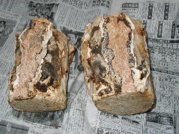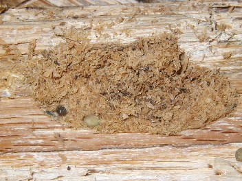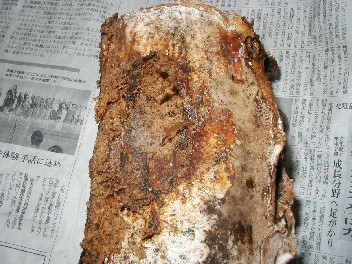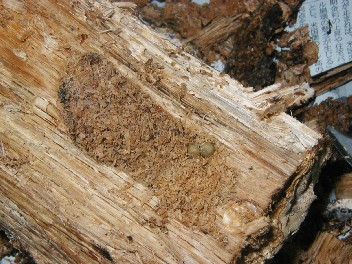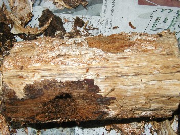 樹皮をむきました。 右上から入り、左上に木屑を埋めています。 |