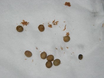 卵を取り出し、ティッシュに並べました。 3週間経っているので、透明感が出ています。 |