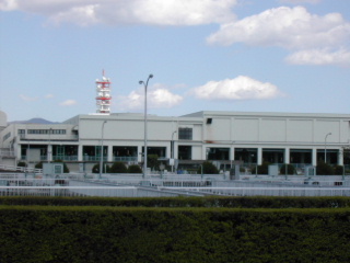 | 北駐車場からみた建物。 甲子園球場の13倍の広さがあり駐車場から藤棚までは、循環バスで移動しました。 藤棚の一般公開はこの時期の1週間くらい。JR京都駅八条口から無料送迎バスが出ていました。 |