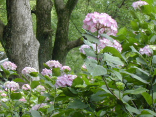 あじさいのイメージは、球形の手毬花の方が額あじさいより 強いのではないかと思っていますが、歴史的には額あじさいが古くこれを観賞用に改良したのが 球形のあじさいだそうです。 |
