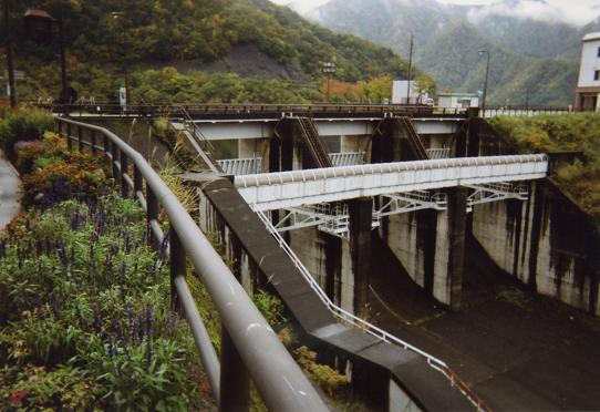 最初に訪れた郡上八幡は、山から湧き出す水が町の至る所を流れている、せせらぎの町。水に感謝する想いからだろうか、水を祭る風習があるようだ。 ここは、湧き水の水汲み場。宗祇水と呼ばれ、こんこんと湧き出ている。プロの料理人とおぼしき人がポリタンクを持って水を汲みに来ていた。小駄良川にかかる清水橋のたもとにあるが、うっかりすると見逃してしまう。 こののれんは、戦前の読み方で、右から左に読む。「にっきだま」。昔なつかしいニッキ飴を売っている。 ど真ん中にカミサンが写っていたが、周りをコピーペーストして隠してある。さて、それはどこでしょう。 古い町並み。二階の両側に張り出した壁は、火事のとき延焼を防ぐ目的で設けられているとのこと。 なんとか壁というのだが、失念した。 このように、街中には至るところに川があり、夏には子供たちがジャンプして飛び込んで、度胸を競うという。その橋に行ってみたが、高さ約20mで、飛び込むなんてとんでもない。でも、道頓堀くらいかな。 郡上八幡は、元祖食品サンプルの町だとかで、サンプル屋さんが何軒かある。それぞれ得意が異なるようだ。左が本物(今朝のおかず)、右がたった500円で売っている手作りのサンプル(ストラップ)。同じものはふたつとなくて、そのリアルさに舌を巻く。ただ、蝋なので少しベトつき、ストラップとしてはお勧めできない。飾って楽しもう。 水力で粉を引く水車のようなものだが、これは右側に水がたまると、その重さで右に傾き左の杵を持ち上げ、傾くことで水がこぼれて今度は左に傾いて杵をつくというもの。この場所でデジカメを落として、以降はインスタントカメラの質の悪い画像になるが、ご容赦。 ここは、ひるがの高原の分水嶺。あっちが日本海、こっちが太平洋みたいな表示もある。要は峠ということだ。何度もスキーには来ていたが、こんなのは気付かなかった。一帯が散策路になっていて、様々な植物を楽しみながらゆっくり歩き回ることも出来る。 ひるがの高原から白川郷までの間、このような景色が続く。「錦」という言葉がぴったりの、赤、黄、緑の織り成す自然な色合いと模様は、日本の美の伝統の原点を感じるところ。雨にけむり、カメラも使い捨てで、十分その美しさを伝えられないのが残念。 有名な白川郷の合掌造りの家屋。中に入ると5階建てになっているものもあり、想像していたよりも大きい。2階以上は基本的に物置で、囲炉裏の煙が充満して、長く居るといぶされてしまいそうだが、それが当時の暮らしをより再現しているようで、何故か懐かしい感じがした。 翌日は白川郷側から白山スーパー林道へ。片道約20km程の道のりだが、みるみる高みに登っていく様が、なかなか壮観。しかもすばらしい眺めのスポットが至るところにあって、そこでずっと景色を眺めていても飽きない。ただ、そのすばらしさ、快感を、画像で伝えるのは難しい。なので、是非訪ねていただくことをお勧めする。片道3150円で、2〜3時間十分楽しめる。 画面中央に写っているのが、スーパー林道。一番奥に小さく見えるのが白山。その名の通り、既に雪をかぶっていた。 このような滝も、至るところにある。山から湧き出す水が、すべての川の源であることを実感する。必ずしもビューポイントにパーキングがあるとは限らず、少し歩く必要があったり、いきなり路駐している車があったりするので、要注意。 これもそのひとつで、確か「三味線の滝」とかいう名前だったように記憶している。何故か間近にはパーキングがなく、最寄のパーキングから歩く必要がある。日本の滝100選に選ばれたというので調べてみたが、違うようだ。それでも、なかなか趣のある姿にはしばし見とれていた。 白山スーパー林道から、今度は九頭竜湖へとやって来た。瀬戸大橋のモデルになった通称の「夢の架け橋」、箱ヶ瀬橋。カミサンに案内されて来てはみたが、1車線しかない上に、誰も通らず、何もなく、ただ引き返すだけの、結構スリリングな橋だ。でも形が瀬戸大橋そっくりで、実は試作品だという。 こちらは、その九頭竜湖のダムの水門で、ダムは普段見慣れたコンクリート作りではなく、岩石や土を盛った構造(ロックフィルダムという)になっている。この地方では結構よく採用される構造のようで、これは新しい発見だった。 これがそのロックフィルダムの画像。下に発電所が見える。1960年の建設というから、当時岩石と土で川を堰き止めて発電しようという発想があったようだ。 |