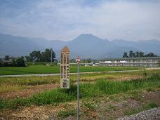 | 松本から乗ったローカル電車は、信濃富士の見える駅で対向車の待ち合わせのため20分の停車。 都会の時間感覚を忘れ、外を散歩し、後は車内で昼寝と決め込んだ。 |