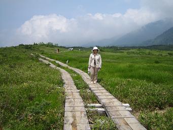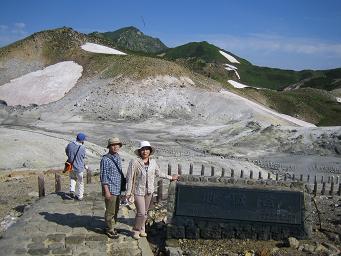 | 室堂を後に、立山高原バスで弥陀ヶ原に途中下車。ここでもまだ2000mくらいはあるが、階段でもあまり息が切れることはなかった。高地トレーニング(?)で、心肺機能が鍛えられたのかも。 夏の暑さも戻り、室堂を見た後ではあまり感動的な風景もなかった。 道路を隔てて、立山カルデラがあったが、不案内で実損ねた。砂防工事の様子が見えるらしい。 |