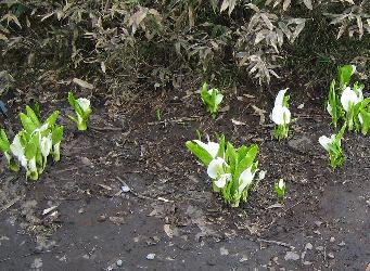 | 一ヶ所だけ水芭蕉が咲いていた。自然発生ではなく、栽培されているようだったが。 | |