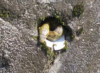| 帰り道で、路肩の壁の排水口にヘビを発見。 これがこの旅の最後のスナップだ。 |
