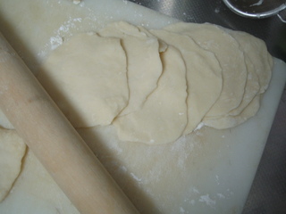 餃子の具が残っていたので、今日の晩ご飯は、昨日に引き続き餃子。と思ったら、皮を買い忘れていた。 そこでふと餃子の皮を作ってみようと思い立った。 昔読んだ「節約生活のすすめ」という本で、確か「買いに行くより作った方が早い」と書いてあったはず。 ほんとかな? 買った方が早いんじゃないかな? と思いながらも、物は試し、餃子の皮作りに初挑戦してみた。 それが、この写真。 まあ・・・難しくはなかったけど。なんというか、手作りなごっつい皮に仕上がりました。 それから、作るのに結局1時間ぐらいかかってしまい、やっぱり買いに行った方が早かったかも・・・でした。 何事も、修練って事かな? |