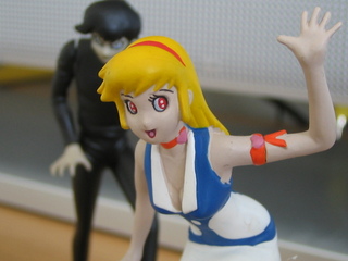 うちにあるガラクタの一つ。フルタの食玩 「永井豪の世界」よりキューティー・ハニー。 奥に、デビルマンも見えますね(笑) 5,6年は昔の物と思われます。 実はこのハニー、足が取れていて、捨てようかな、どうしようかな、と迷っていたら、なんと、予備を発見。 というか、コレクションしようとして同じ物に当たっちゃったのを後生大事に持っていたんですね・・・ ということで、めでたくこれはぴよ太のおもちゃになりました。 毎朝、ハニーの腕や、不動明の胴体が、あっちこっちに散らばった状態で見つかります(((( ;゜Д゜))) どうして子供って、はずすの、好きなんでしょう・・・ |