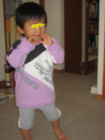 もう一丁、リメイクです。もとはCasual Corner Annexという、アメリカでは割と見かけるブランドのトレーナーでした。 アメリカで買って、首まわりがへにゃへにゃになるまで着倒しました。地がいいので、捨てるのは惜しいな〜と思っていたので、めでたくリメイクです。 パパの持っているラガーシャツと微妙にペアみたいで、うっかり同時に着たときは、ちょっと恥ずかしい服でした(笑)。 そうそう、子供服とベビー服の違い、最近やっと理解しました。 100センチからは子供服で、95センチ以下はベビー服。ベビー服のトップスは首の所にボタンがあり、子供服はナイ。 それに気がついたときは、なるほどねー、でした。 ところで最近のぴよ太の口癖。 「ちょっと!」 ![]() 某お笑い芸人のネタではありません。 完全に、私のコピーです。 何でもまねするんだよね〜〜。 ぴよ太の、三大口癖といえば 「やれやれ。」 「しょーがない!」 「ほんまに〜」 ・・・。 ぴよ太のやんちゃっぷりに、腹を立てつつグッとこらえる私の姿が見えてきますね(笑)。 それにしても、ぴよ太の言葉が関西弁風味になってくるのは止めようもありません。 鍵のかかったドアを前に、「開かへんな〜!」と言われたときは、ほんとに自分の言葉遣いに気をつけよう、と心に誓ったのですが。 大体生まれ育った場所は、方言が「ヤクザみたい」と言われるような土地柄。 もっとも、私はあちこちさすらった(笑)おかげで、この辺の人からは「東京の人?」と言われるぐらい方言がでない方なんだけど。 いかにぴよ太が男の子とはいえ、あんまり関西弁ばりばりだと、私の方のショックが大きいわ・・・。 なので「そーやなー!」は「そうね〜♪」に。 「○○やんか〜!」は「○○でしょ?」に。 頑張って、自分の言葉を矯正しています。 効果・・・でてるかな・・・・? |