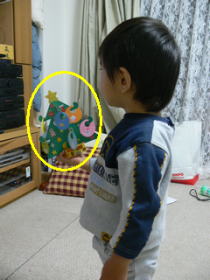 季節柄、いろいろなところでクリスマスツリーを見かけます。ぴよ太、それをいちいち指さしては「おつくり〜!おつくり〜!」と叫ぶので、そんなにクリスマスツリーが好きなら、と「こどもちゃれんじ」の付録に付いていた紙のクリスマスツリーを組み立ててみました。 大喜びのぴよ太。 「おつくり!」を連呼しながら、片手にしっかり持ってあちこちうろうろ。 よしよし。 そして、夕食の支度などを始めて、ふと見ると・・・。 ![]() 10分後のお姿。→ もういいのか・・・。 ぴよ太にかかっては、クリスマスツリーも分解対象だったらしい・・・・ |